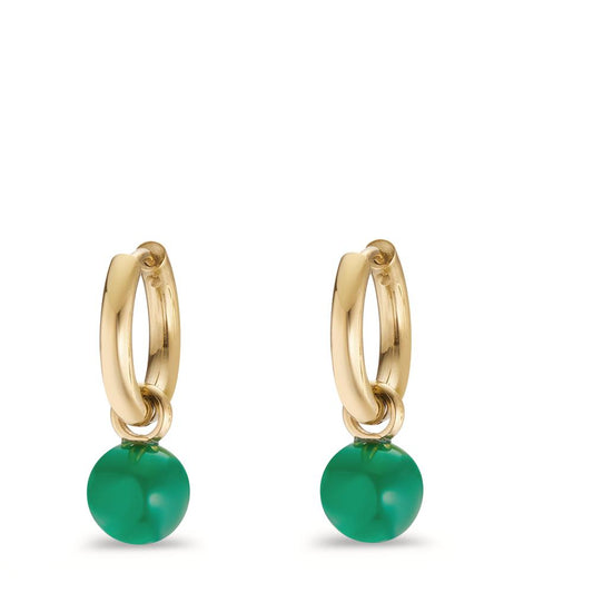 Orecchini a cerchio con pendente Acciaio inossidabile Agata verde, 2 pietra giallo rivestimento IP