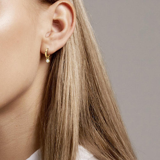 Orecchini circolari Argento Zirconia acqua, 10 pietra rodiato