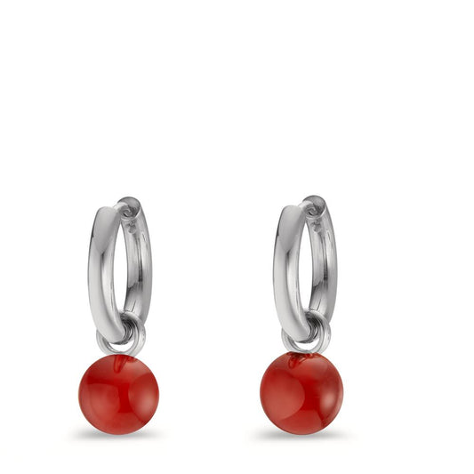 Orecchini a cerchio con pendente Acciaio inossidabile Agata rosso, 2 pietra