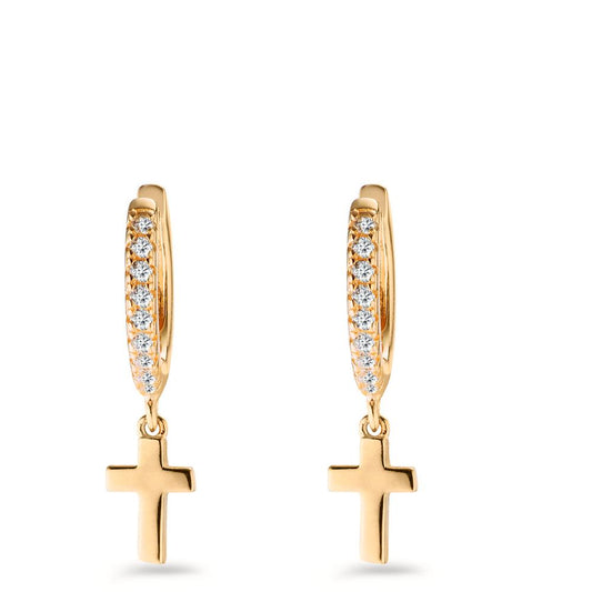 Orecchini circolari Argento Zirconia 18 pietra giallo dorato Croce