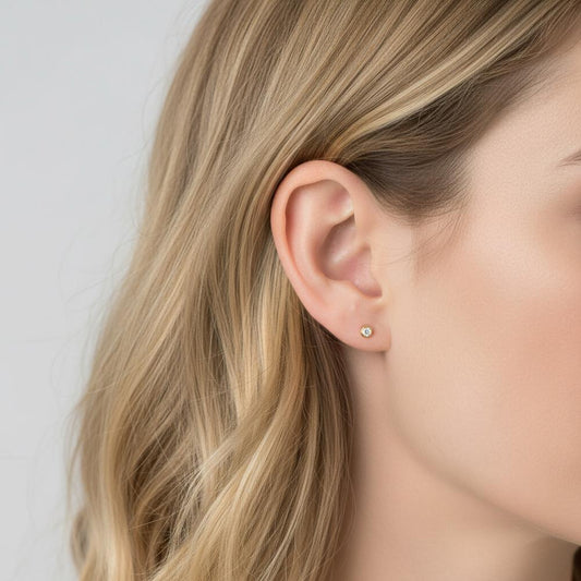 Orecchini a bottone 1 pz Oro bianco 375/9K Zirconia Ø5 mm