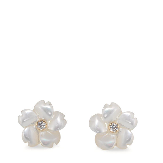 Orecchini a bottone Oro giallo 375/9K Zirconia Madreperla bianco Fiore Ø8 mm