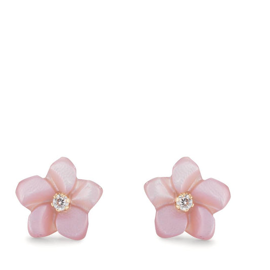 Orecchini a bottone Oro giallo 375/9K Zirconia Madreperla rosa Fiore Ø8 mm