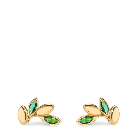 Orecchini a bottone Oro giallo 375/9K Zirconia verde, 4 pietra Foglio
