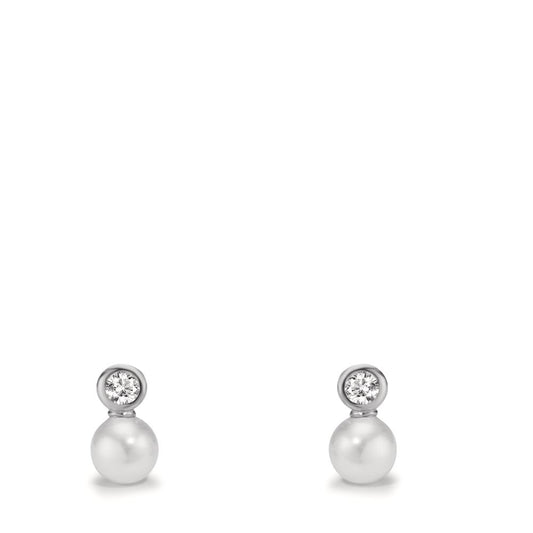 Orecchini a bottone Oro bianco 750/18 carati Diamante bianco, 0.04 ct, 2 pietra, [Brillant], w-si Perla coltivata d'acqua dolce bianco, 2 Perla, 5.5 mm