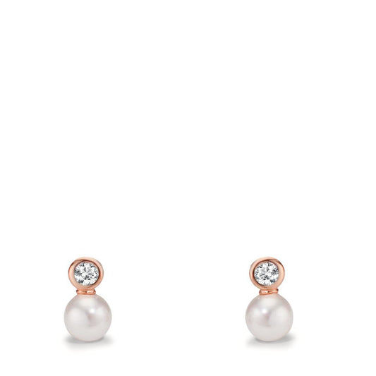 Orecchini a bottone Argento Zirconia 2 pietra rosa dorato [shining Pearls], 2 Perla, 5 mm