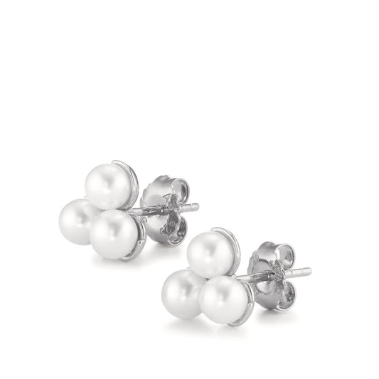 Orecchini a bottone Argento rodiato Perla coltivata d'acqua dolce bianco, 6 Perla, 4.5 mm Ø9 mm