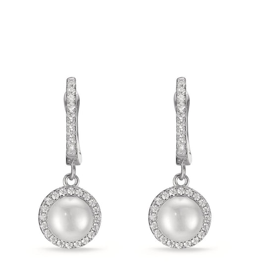 Orecchini circolari Argento Zirconia rodiato Perla coltivata d'acqua dolce bianco, 2 Perla, 6 mm
