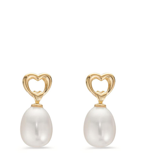 Orecchini Oro giallo 375/9K Perla coltivata d'acqua dolce bianco, 2 Perla, 7.5 mm Cuore
