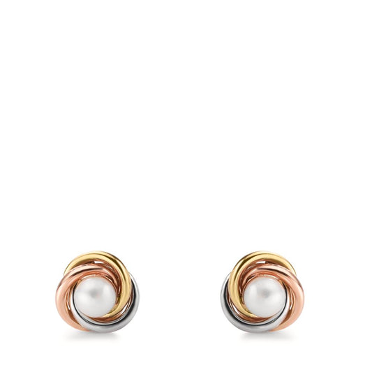 Orecchini a bottone Oro giallo 375/9K, Oro bianco 375/9K, Oro rosso 375/9K Perla coltivata d'acqua dolce, 2 Perla 3.5-4 mm Nodo Ø8 mm