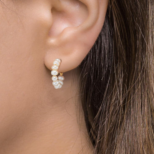 Orecchini a cerchio Argento giallo dorato Perla coltivata d'acqua dolce, 20 Perla, 4 mm