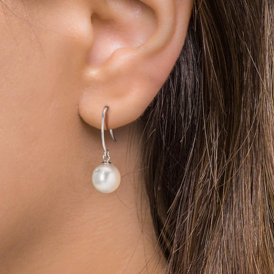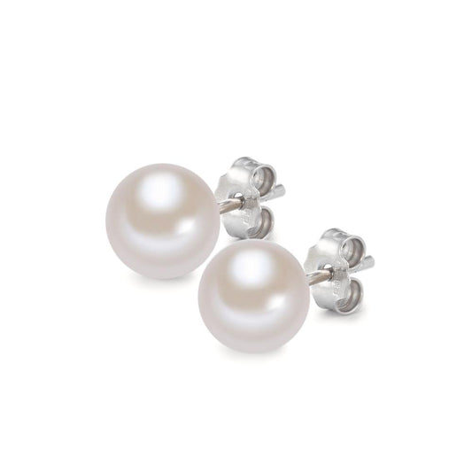 Orecchini Oro bianco 750/18 carati Perla coltivata d'acqua dolce bianco, 2 Perla, 8 mm