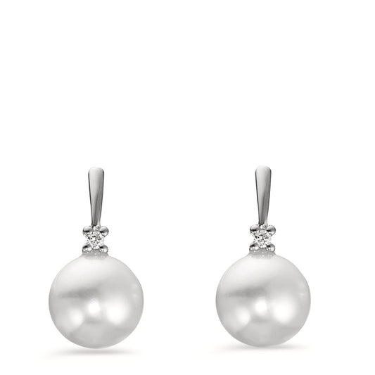 Orecchini a bottone Oro bianco 750/18 carati Diamante 0.02 ct, 2 pietra, w-pi1 Perla coltivata d'acqua dolce bianco, 2 Perla, 7 mm
