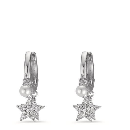 Orecchini circolari Argento Zirconia rodiato [shining Pearls] bianco, 6 Perla Stella