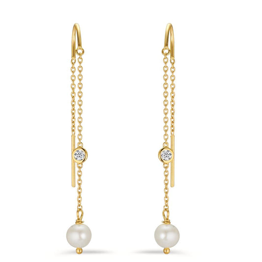 Orecchini a strappo Argento Zirconia 2 pietra giallo dorato Perla coltivata d'acqua dolce bianco, 2 Perla, 6 mm