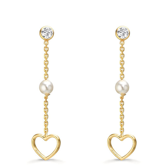 Orecchini Oro giallo 375/9K Perla coltivata d'acqua dolce bianco, 2 Perla 7.5-8 mm