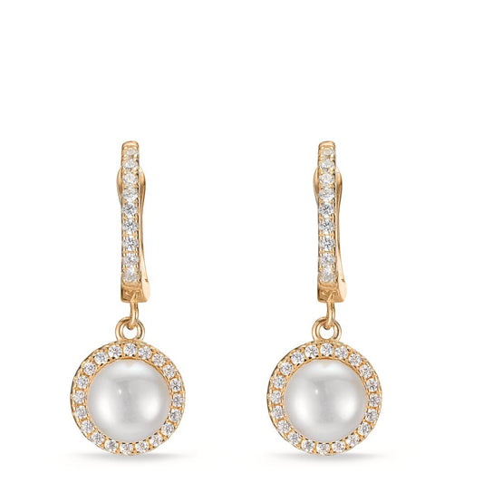 Orecchini circolari Argento Zirconia giallo dorato Perla coltivata d'acqua dolce bianco, 2 Perla, 6 mm