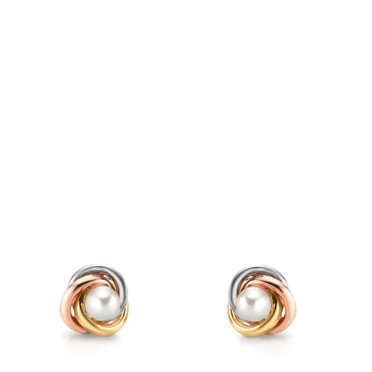 Orecchini a bottone Oro giallo 375/9K, Oro bianco 375/9K, Oro rosso 375/9K Perla coltivata d'acqua dolce, 3.5 mm Nodo Ø7 mm