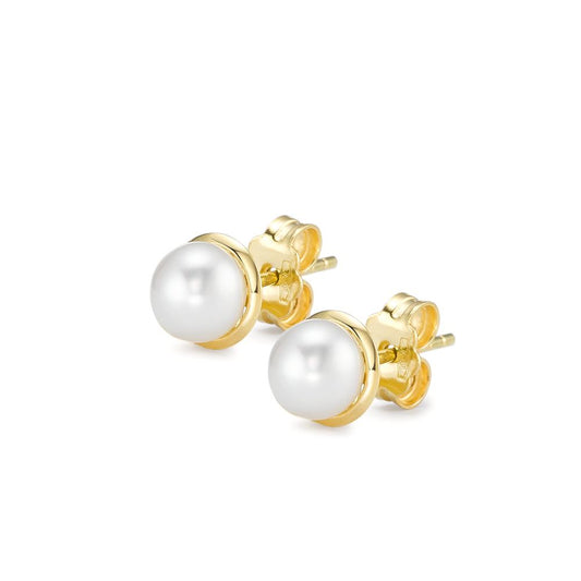 Orecchini a bottone Oro giallo 375/9K Perla coltivata d'acqua dolce bianco, 2 Perla, 5 mm