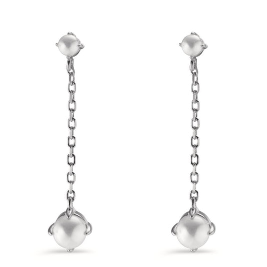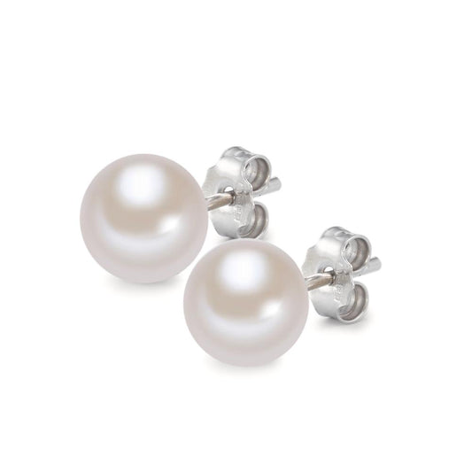 Orecchini Argento rodiato Perla coltivata d'acqua dolce bianco, 2 Perla, 8 mm