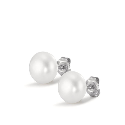 Orecchini a bottone Argento rodiato Perla coltivata d'acqua dolce bianco, 2 Perla 9.5-10 mm