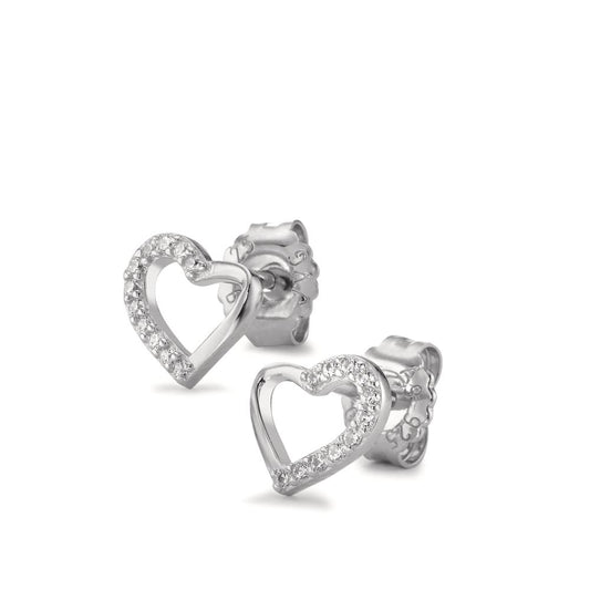 Orecchini a bottone Argento Zirconia 22 pietra rodiato Cuore Ø7.5 mm