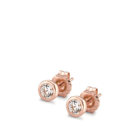 Orecchini a bottone Argento Zirconia 2 pietra rosa dorato Ø5.5 mm