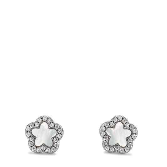 Orecchini a bottone Argento Zirconia rodiato Madreperla bianco Fiore Ø8 mm