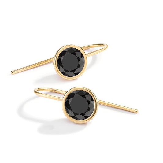 Orecchini Acciaio inossidabile Zirconia nero, 2 pietra giallo rivestimento IP 20 cm Ø9.5 mm