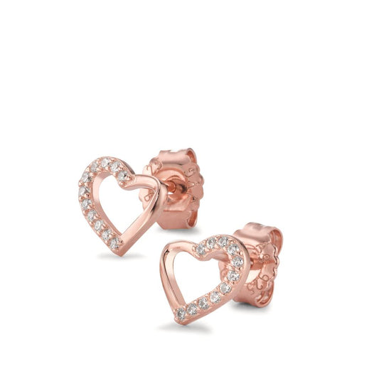 Orecchini a bottone Argento Zirconia rosa dorato Cuore Ø7.5 mm