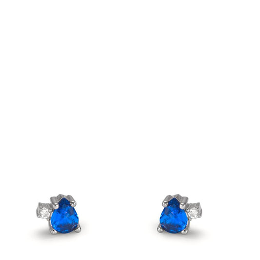 Orecchini a bottone Argento Zirconia blu zaffiro, 4 pietra rodiato Ø4 mm