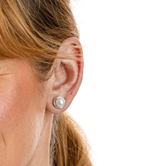 Orecchini a bottone Argento Abalone 2 pietra rodiato Ø8 mm