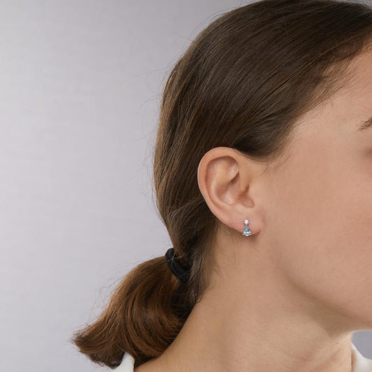 Orecchini a bottone Argento Topazio blu, 2 pietra, Zirconia bianco, 2 pietra rodiato