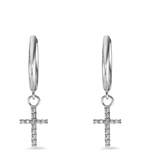 Orecchini circolari Argento Zirconia bianco, 22 pietra rodiato Croce