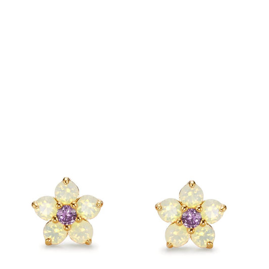 Orecchini a bottone Argento Zirconia 12 pietra giallo dorato Fiore Ø8.5 mm