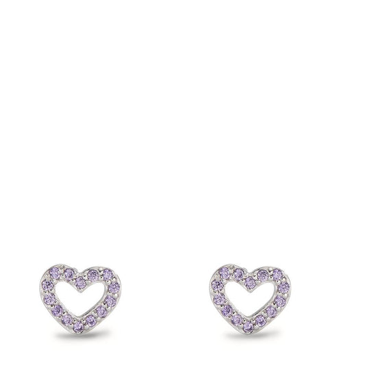 Orecchini a bottone Argento Zirconia viola rodiato Cuore Ø7 mm