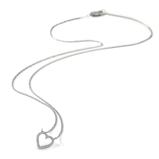 Collana Oro bianco 750/18 carati Diamante bianco, 0.056 ct, 27 pietra Cuore 42 cm