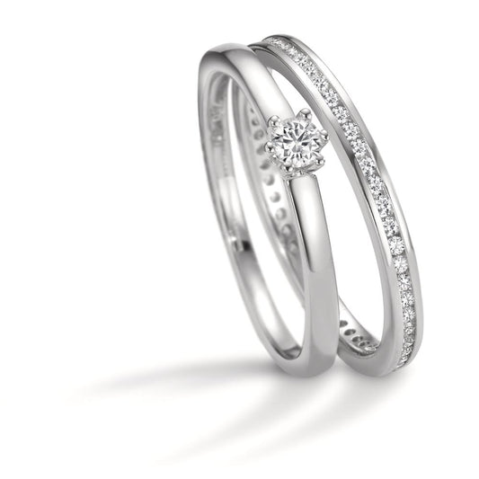 Anello solitario Oro bianco 750/18 carati Diamante bianco, 0.04 ct, 8 pietra, [Brillant], w-si, Diamante bianco, 0.15 ct, [Brillant], w-si