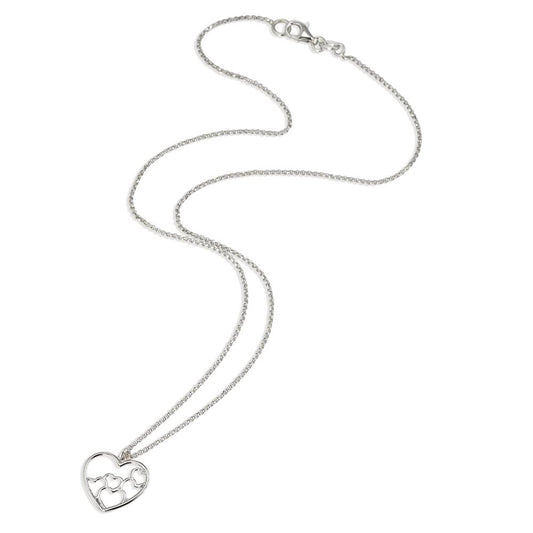 Catena con ciondolo Argento Zirconia rodiato Cuore 42 cm Ø12 mm