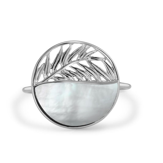 Anello Argento rodiato Madreperla bianco Foglio Ø16 mm