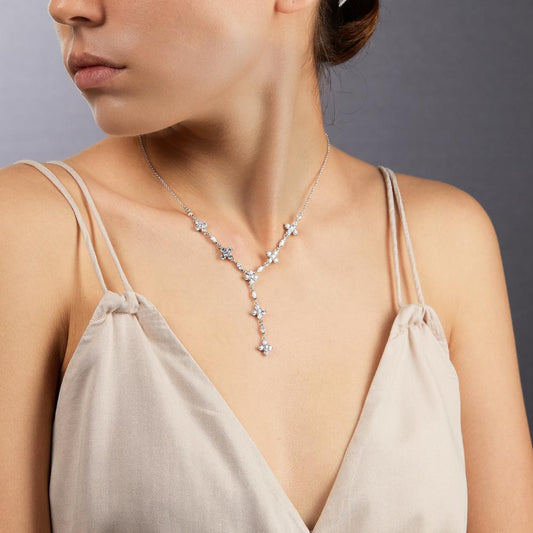 Collana Oro bianco 375/9K Zirconia bianco, 9 pietra 40-42 cm