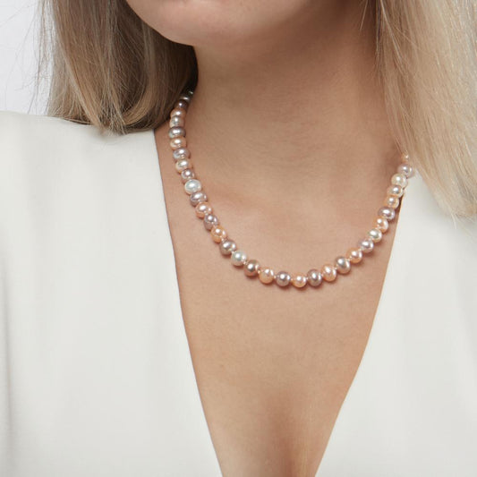 Collana Argento Perla coltivata d'acqua dolce multicolore, 7.5 mm 43 cm