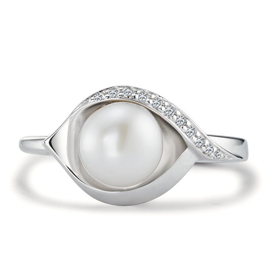 Anello Argento Zirconia 10 pietra rodiato Perla coltivata d'acqua dolce bianco, 7.5 mm