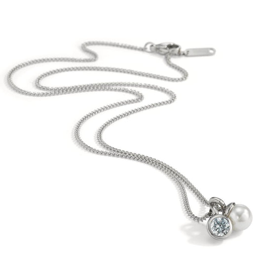 Catena con ciondolo Argento Zirconia Perla coltivata d'acqua dolce bianco, 3 Perla 45 cm