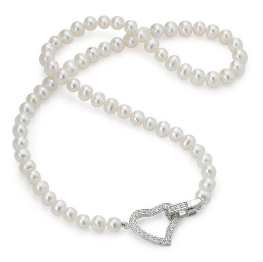 Collana Argento Zirconia Perla coltivata d'acqua dolce bianco Cuore 45 cm