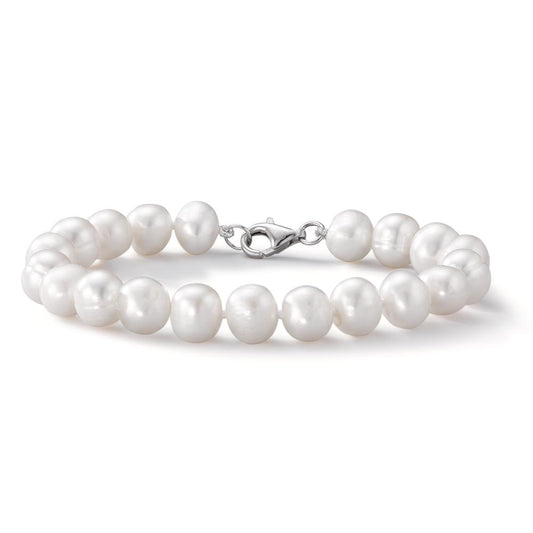 Bracciale Argento rodiato Perla coltivata d'acqua dolce bianco 7-7.5 mm 19 cm