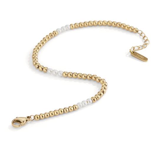 Bracciale Acciaio inossidabile giallo rivestimento IP Perla di conchiglia bianco, 9 Perla, 3 mm 17-19 cm Ø3 mm