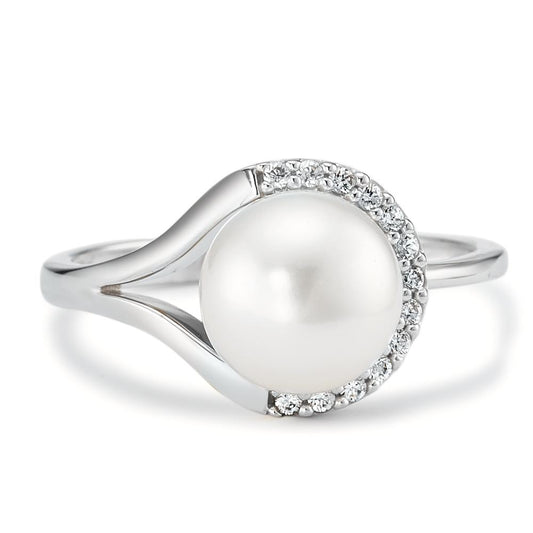 Anello Oro bianco 750/18 carati Zirconia 13 pietra Perla coltivata d'acqua dolce bianco, 7.5 mm