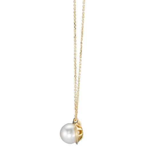 Collana Oro giallo 750/18 carati Perla coltivata d'acqua dolce bianco, 7.5 mm 42 cm