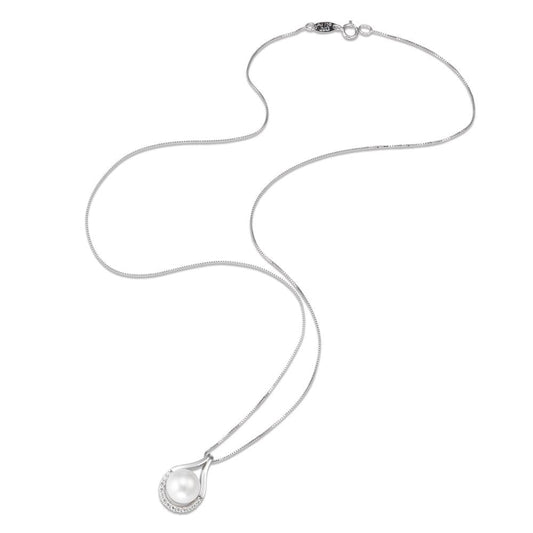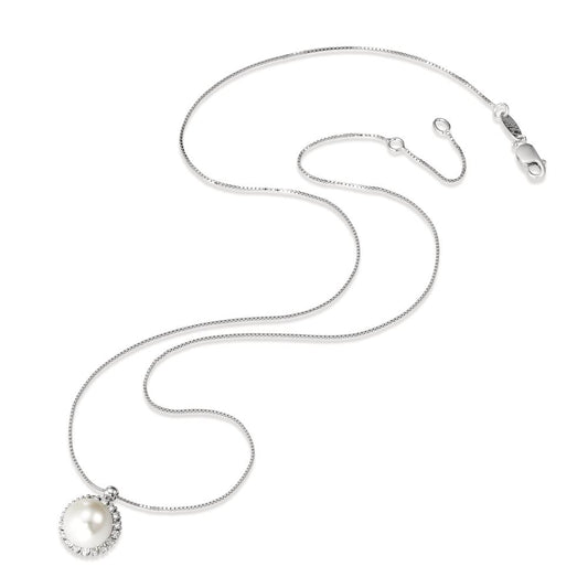 Collana Oro bianco 750/18 carati Diamante 0.18 ct, w-si Perla coltivata d'acqua dolce bianco, 8 mm 39-42 cm